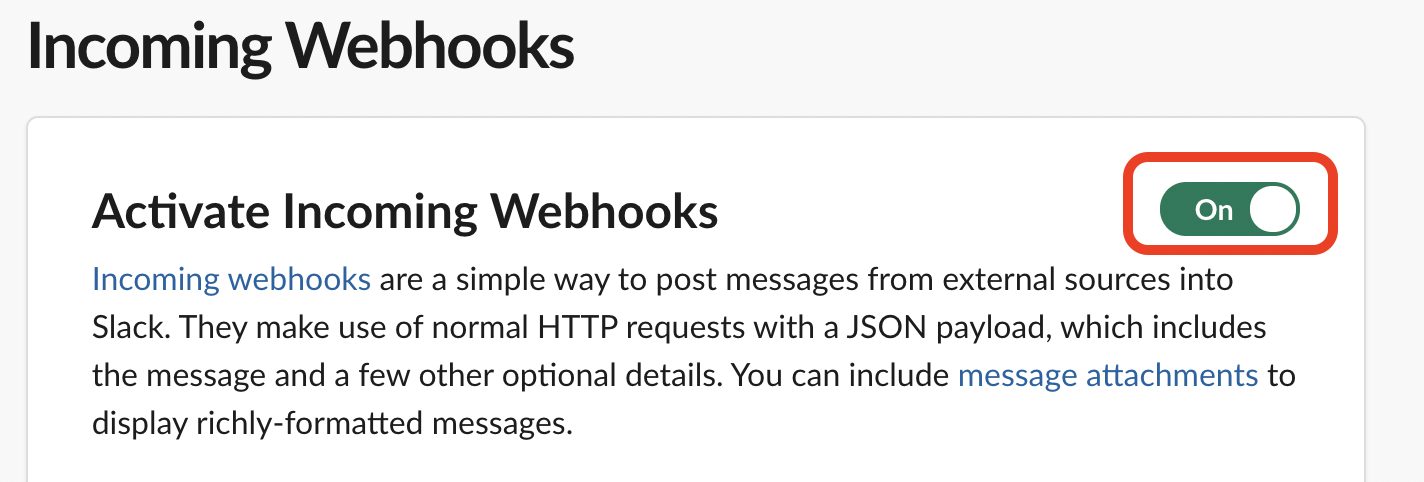 Building Apps for Slack / Add features and functionality / Incoming Webhooks 으로 이동하여