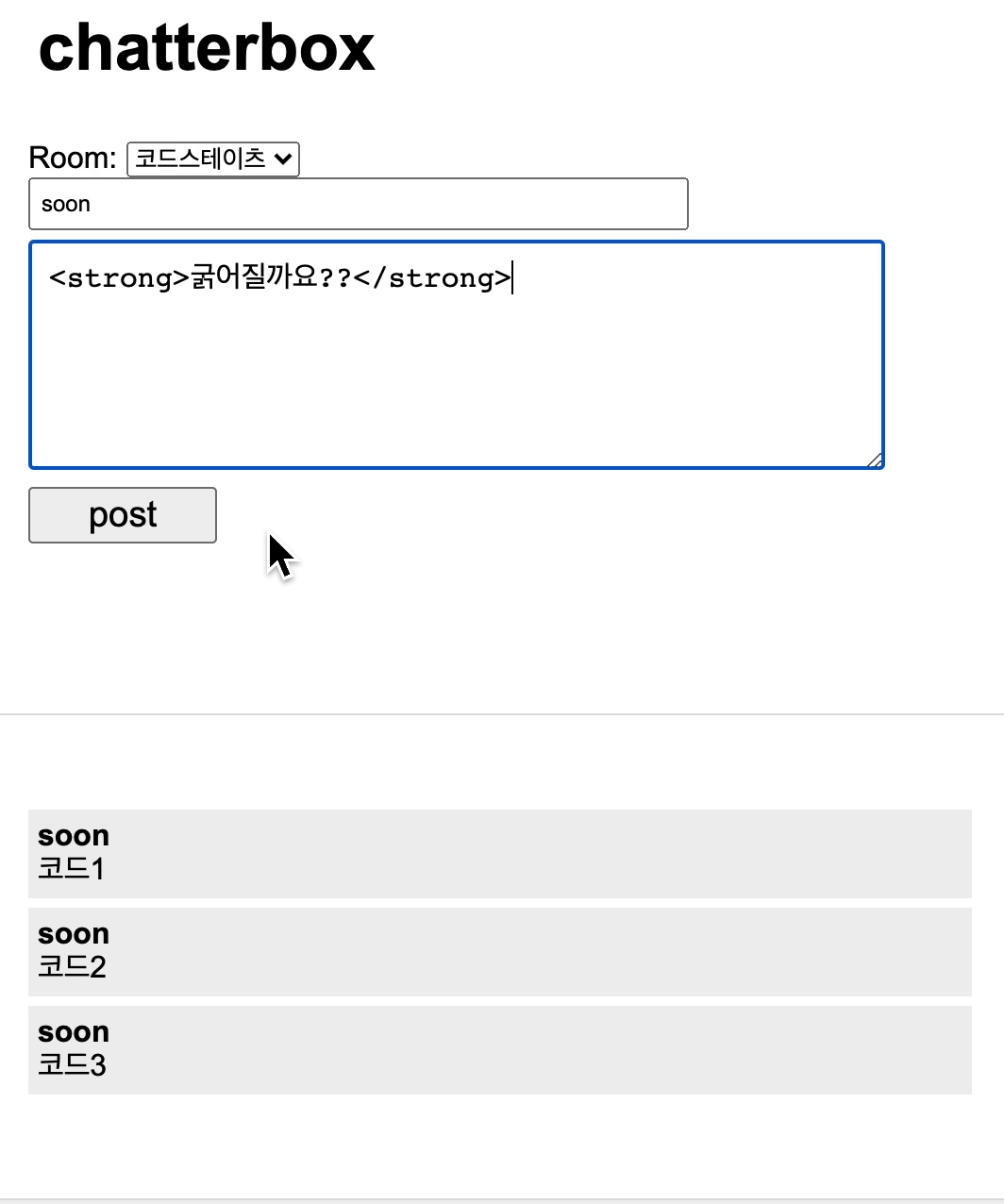 일부러 XSS 공격을 허용하기위해서 DOM에서 textcontent가 아닌 innerHTML을 사용했다.